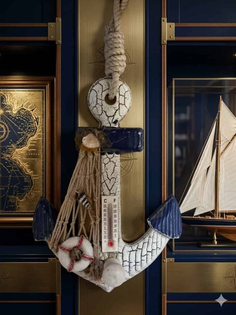 The Captain’s Gallery: Hand-Finished Crackle Anchor Wall Thermometer