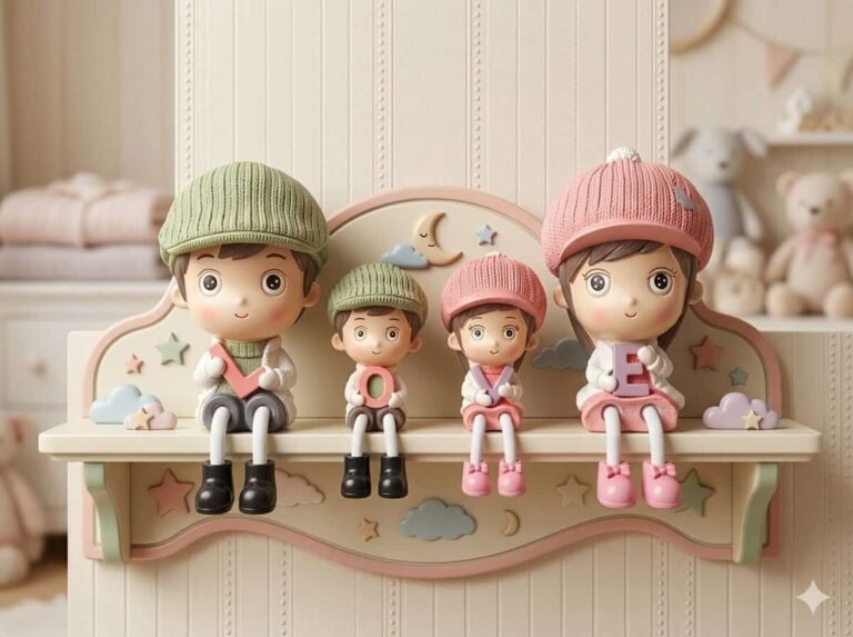 4-Piece “Family” Resin Figurine Set – Hanging Legs Shelf Decor