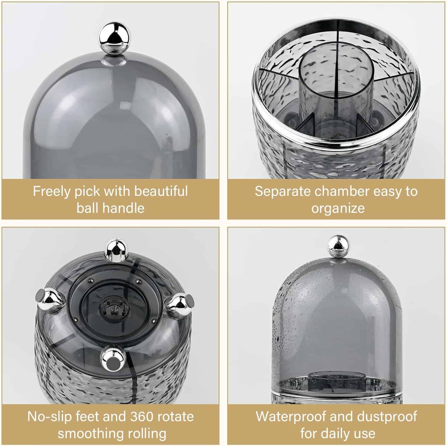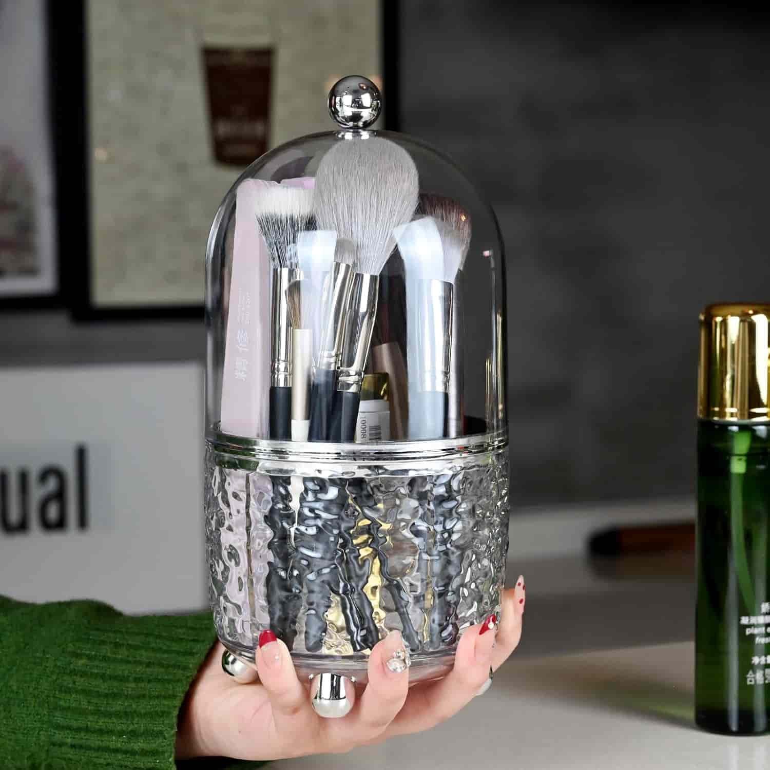 Makeup Brush Holder with Lid Cosmetic Tools Organizer 360 Rotating Make up Brushes Storage for Vanity, Waterproof & Dustproof