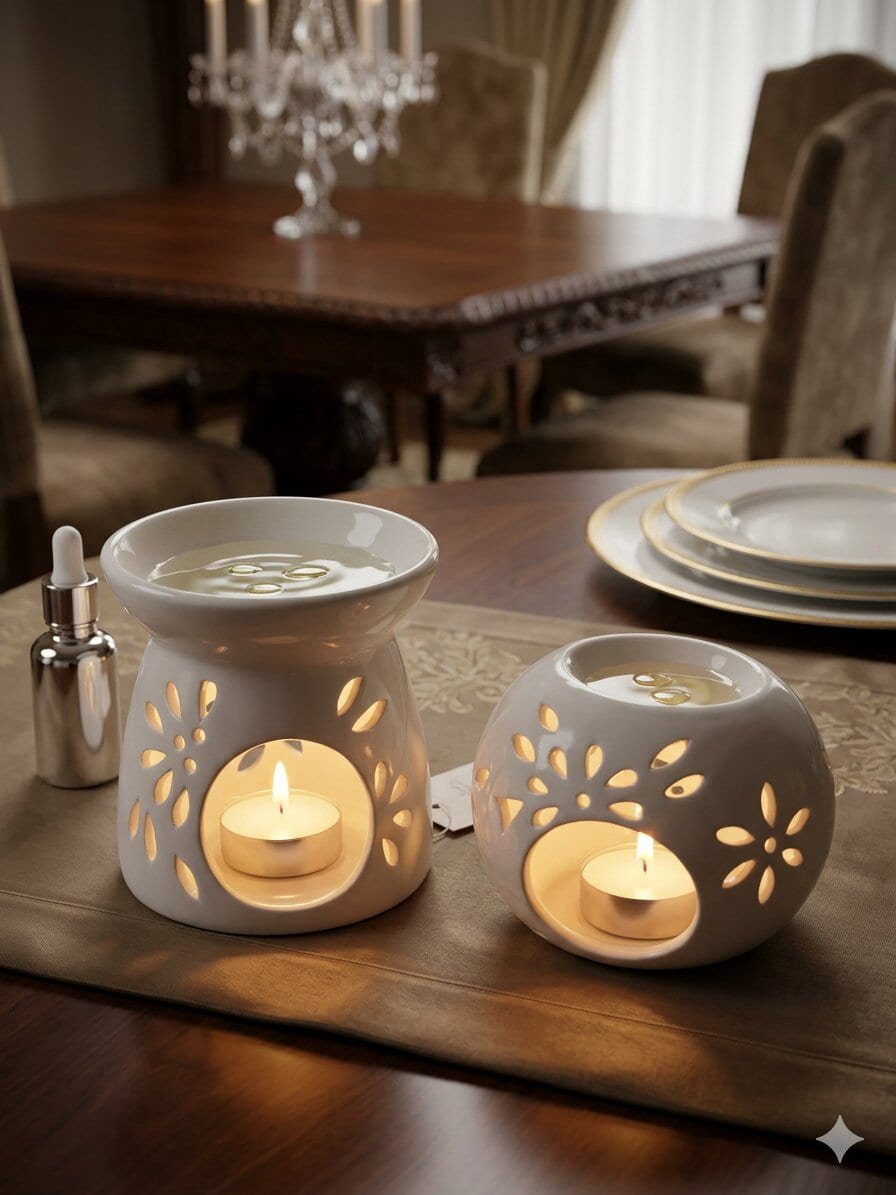 Perfect for essential oils or scented wax melts, these burners serve as an elegant centerpiece for luxury dining tables, spa-inspired bathrooms, or serene bedside stands. Their minimalist white finish ensures they blend seamlessly into any high-end decor, while their functional design provides an immersive aroma experience.