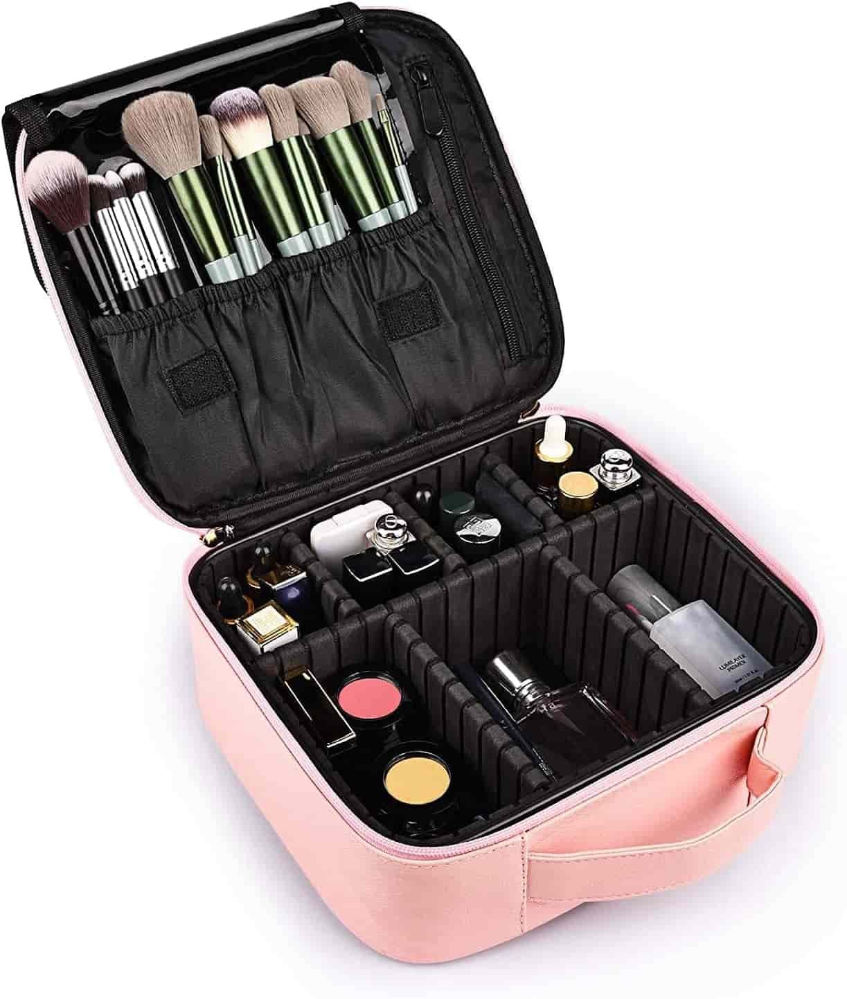 - 【Adjustable Compartments】: This Makeup Bag has several compartments and slots enabling you to keep your makeup tools neat and tidy. Specially designed adjustable compartments, providing you with the flexibility to store your makeup essentials in a customized manner. This ideally sized cosmetic pouch is also convenient for use as a travel bag or as a dressing table organizer.
