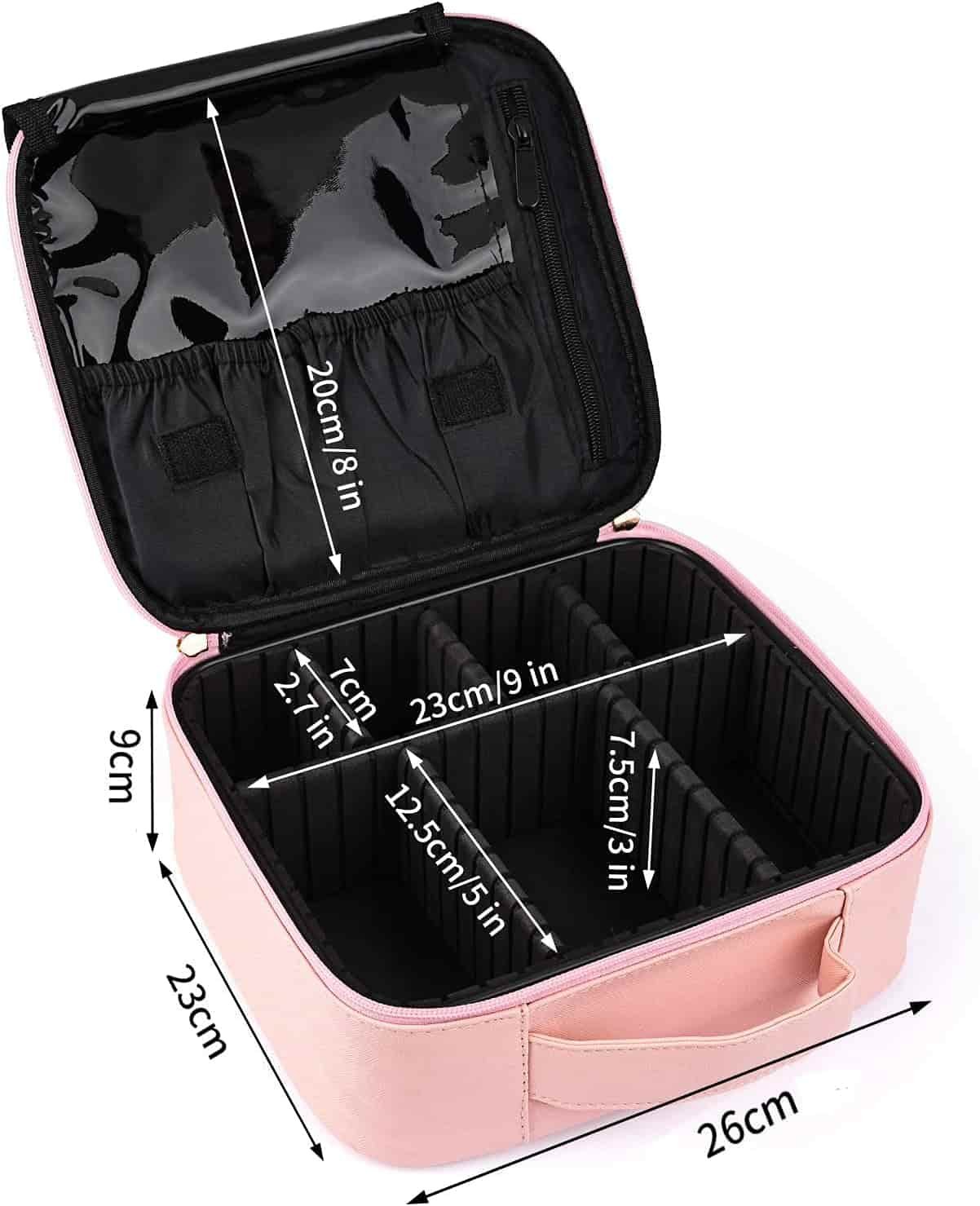 - 【Ample Storage Space】: This vanity bag has enough space to store your makeup and cosmetic accessories, like lipstick, lip gloss, makeup brushes, eyeshadow, makeup pouches , skin care products and can be used as a toiletries bag too.