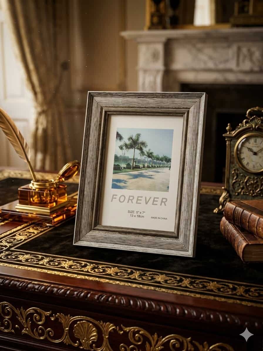 Add a layer of historical elegance to your space with our “Forever” Heritage Frame. This piece is defined by its deep, linear textures and a multi-toned weathered grey finish, designed to evoke the feeling of a cherished family heirloom found in an old-world library.